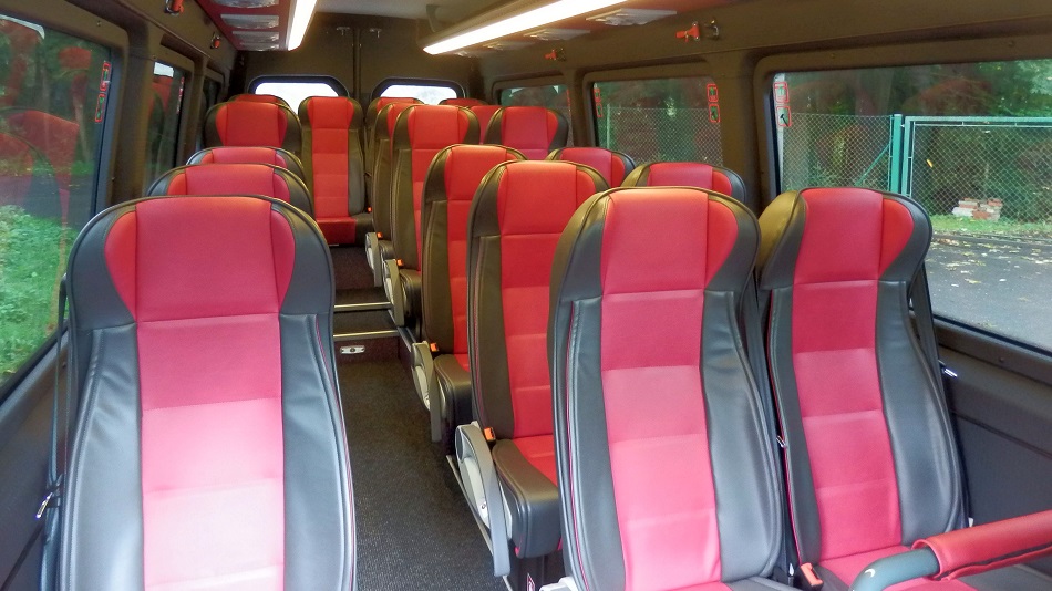 VW crafter černé barvy, rok výroby 2016, je minibus, který nabízí 19 míst pro cestující a řidiče. Tento minbus má kožená sedadla a celý interiér je v černo - červeném provedení. Vozidlo je počtem míst vhodné pro výjezdy sportovní klubů nebo dopravou pracovních teamů na workshopy, team buildingy či večírky. V této výbavě je jediný v ČR.